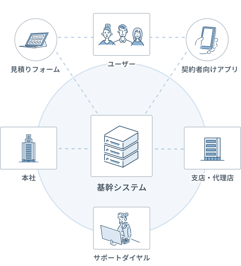 契約管理や顧客管理などの基幹システムに加え、契約者向けアプリや見積りフォームなど、周辺システムも含めて幅広く開発・改善を行っています。全国から寄せられるシステムに関するお問い合わせは、自社のサポートダイヤルで一元対応しています。